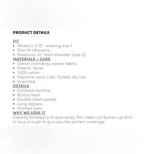 TORRID CHAMBRAY TAYLOR DENIM SHIRT
