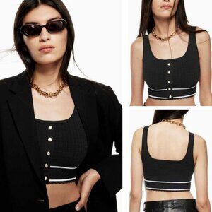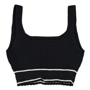 BABATON Sculpt Knit Cropped Button Tank Top Size Small Black / White