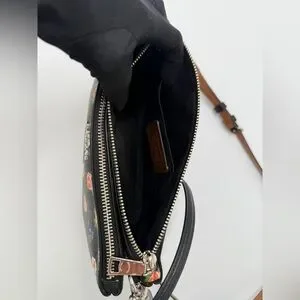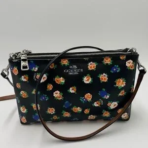 Coach F57628 Floral Double Zip Crossbody Bag Black Multicolor Floral