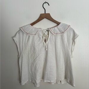 Anthropologie White Embellished Collard Cottage Embroidered Short Sleeve Medium