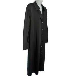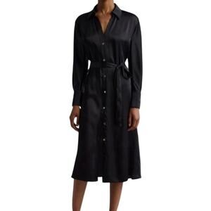 Vince Black Satin Long Sleeve Button Front Collar Midi Dress size L NEW No Belt