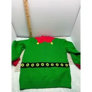 Unbranded Green Elf Christmas Sweater Kids Size 7 Popcorn Sleeve Holiday Knit