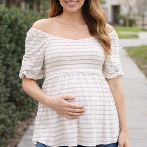 Ingrid & Isabel Maternity Top Size Small Smocked Striped Boho Pregnancy Blouse