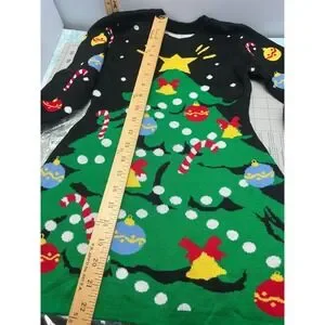 Girls Christmas Tree Sweater Dress Black Knit Long Sleeve Holiday Size M