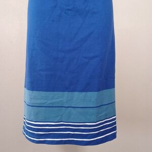 Vintage 1960s Mod Boat Neck Shift Dress Resort Nautical Blue Stripes Cap Sleeve
