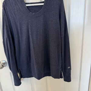 Alo Yoga Fluid Hoodie Heathered Blue Scoop Neck Pullover Sweatshirt Women Active