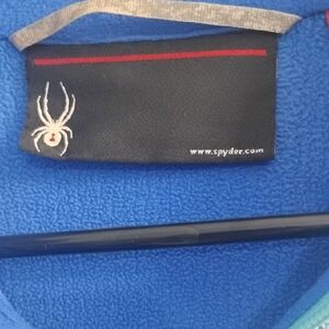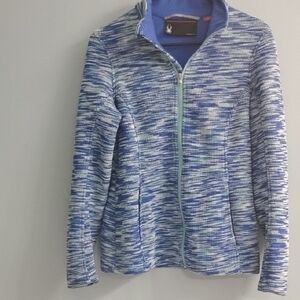 Add style with this Spyder jacket. Features a blue and white pattern. Ideal for any casual outing. Gently used but still great condition!