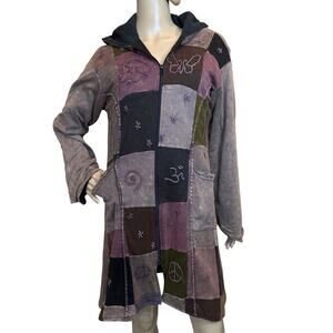 VTG Kathmandu Imports Boho Fairy Grunge Artsy Patchwork Zip Jacket Tunic Dress L