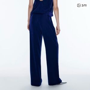 Zara Fluid Velvet Trousers Deep Blue Women's