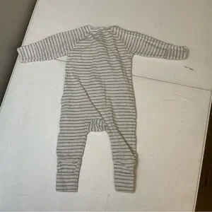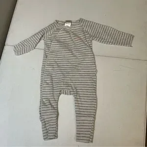 Bonds Baby Grey Marle Stripe Cosysuit Snap 0-3M EUC