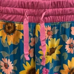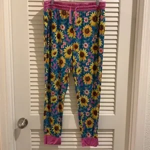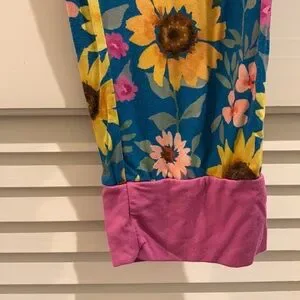 Little Sleepies Women’s Blue and Pink Sunflower Fields Bamboo Pajama Set Size XL