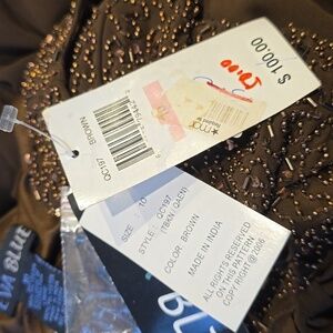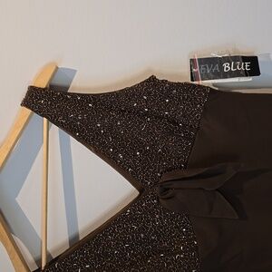 Eva Blue - Y2K Chocolate Brown Embellished Beaded Bodice Flare Formal Dress