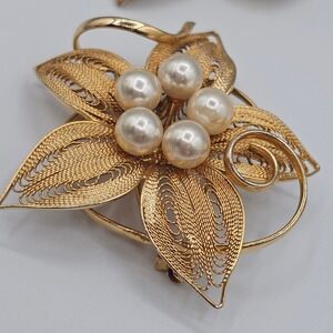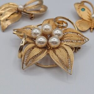 Keywords: vintage jewelry, filigree, pearl accents, floral design, butterfly pin, bow brooch, gold tone, statement pin, gift for her, designer inspired, costume jewelry, elegant, feminine, accessory, special occasion, event, formal