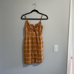 American Eagle Mustard Yellow Grid Bow Dress size medium