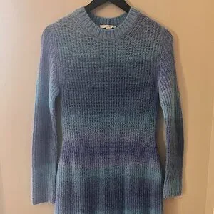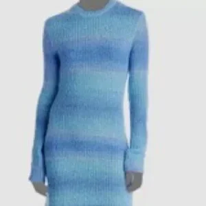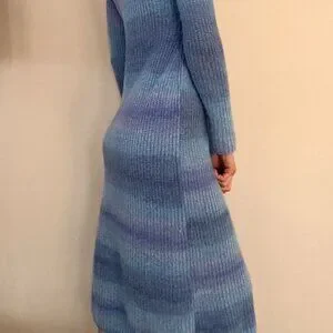 Elegant blue gradient maxi dress. Long sleeves. Soft knit fabric.