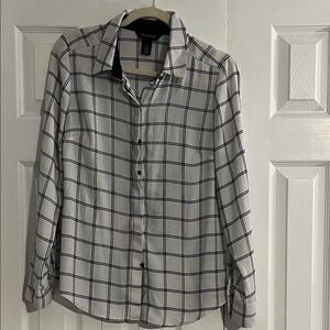 White House Black Market Plaid Button-Up Blouse