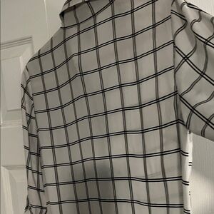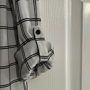 Chic plaid design. Ideal for office or casual wear. Comfortable and stylish. Sleeves can be worn long or rolled up.