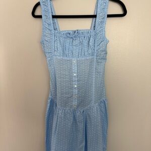 NWT Frankie’s Bikinis Dress Christabelle Gauze Maxi Corset in Blue Polka Dot