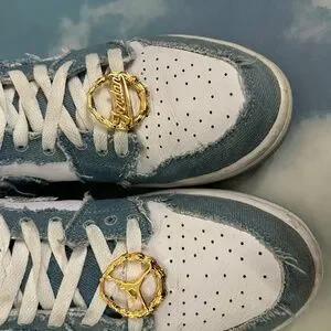 With a denim fabric type, lace-up closure, and standard shoe width, these sneakers feature the iconic Jordan design with a high-top shoe shaft style and comfortable foam insole. The multicolor scheme with white, worn blue, and metallic gold accents adds a retro touch to the classic silhouette, making them a must-have addition to any sneaker collection.