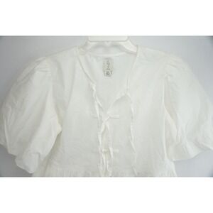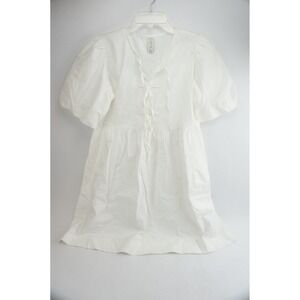 EUC Joie Mini Dress Womens XS White Puff Sleeve Cotton Poplin Tie Neck Babydoll