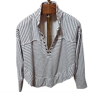 Anthropologie Pilcro Spliced Henley Top Black White Striped Size Small