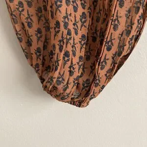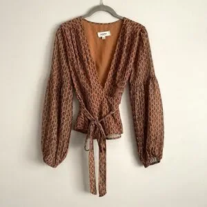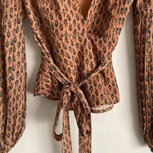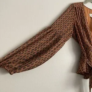 Anthropologie PORRIDGE Puff Long Sleeve Wrap Blouse Size Small Brown Floral