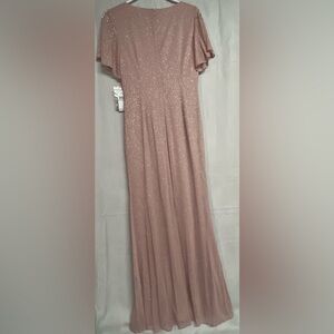 SLNY Glitter Mesh Sheath Gown with Beaded Shoulder Pastel Pink Dress