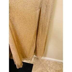 City Triangles Gold and Silver Evening Gown with Slit, Spaghetti Strap, Size 1