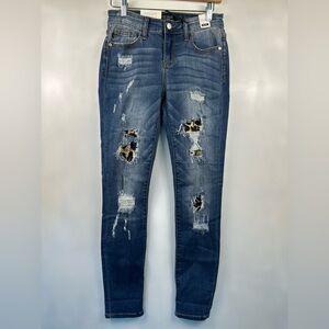 Judy Blue Jeans Skinny Fit Leopard Patches Detail 3/26 Destroyed Distressed NEW
