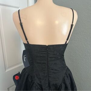 ◾️FITTED WAIST SITS ATOP AN A-SKIRT WITH GATHERED, PANNIER-STYLE PANELS AT THE SIDES