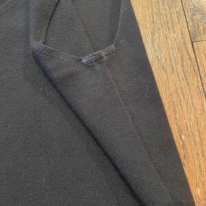 Chic black tank with a flattering V-neck. Ideal for layering. Signs of wear. Some wash wear and light underarm staining.