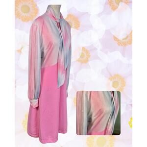 Vintage 70s Pink Gray Spray Pattern Shirt-Styled Solid Pink Shirt Dress XL
