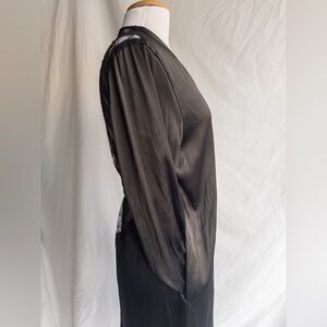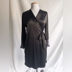 Victoria’s Secret Black Satin Wrap Robe Lace Back M/L Boudoir
