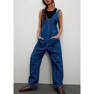 Free People We The Free High Roller Jumpsuit Overalls Medium Wash Boho Large
