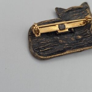 Keywords: cat brooch, kitten pin, animal jewelry, costume jewelry, vintage style, bronze tone, charming, whimsical, gift for cat lover, fashion accessory, cute, unique