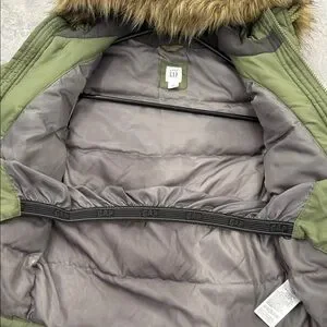 GAP Baby Green Jacket with Faux Fur Hood.
