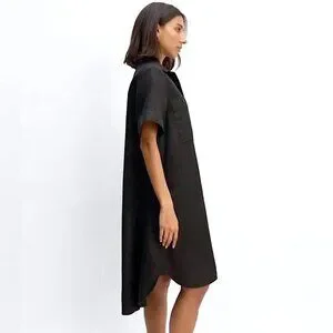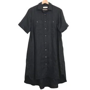 EVERLANE Daytripper Linen Dress Oversized Shirttail Hem Euro Flax Size S Black
