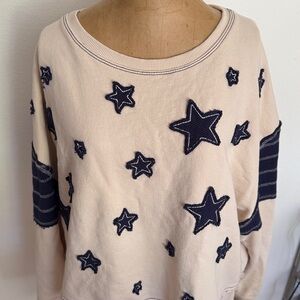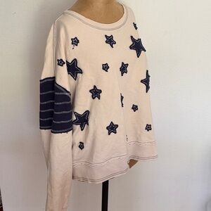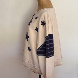 Pilcro sz M Cream Textured cotton Top appliqué star details in navy arm bands