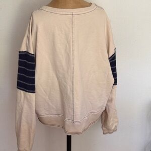 Cream sweatshirt style top with textured design. Soft and comfortable.