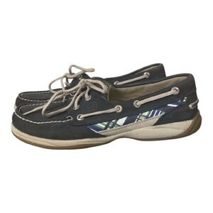 Sperry Leather Women's Bluefish Navy Blue Plaid Slip On Boat Shoe Nautical 7.5