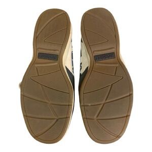 Stylish navy boat shoes featuring a colorful patterned trim, signature wave spring technology, and is 100% Leather. Perfect for casual outings out on the water!