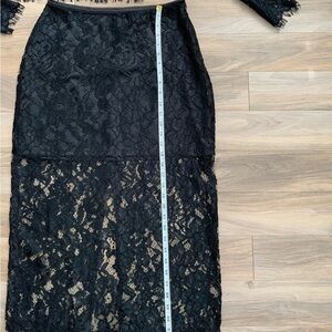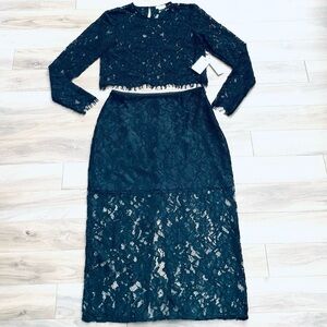 Give your OOTD an unabashedly feminine look with this delicate long sleeve lace top & Midi Lace Skirt by Jason Wu.