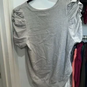 Gray sweater top with cinch waist by express in size medium. Adorable puffer top with ruffle. Half sleeves. Excellent condition. Smoke free home.