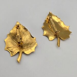 Keywords: gold tone, leaf design, nature jewelry, vintage pin, dainty, botanical, accessory, gift, fashion, statement, brooch set, fall, autumn