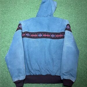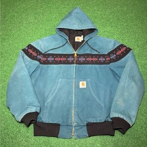 HOLY GRAIL Vintage 90s Teal Blue Carhartt Aztec Coat, Hooded Jacket (Large)