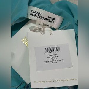 NWT (New With Tags) Diane von Furstenberg “Lupin” midi dress in Size 6. Crafted from lightweight, plissé chiffon, this dreamy frock showcases a romantic turquoise-based floral print that evokes effortless elegance.