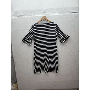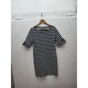 Talbots Womens Navy & White Striped Cotton Dress With Ruffle Sleeves M