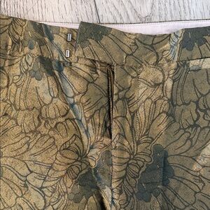 Chic olive chinos with floral design. Perfect blend of style and comfort.