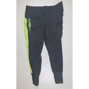 The TuffRider Women's Marathon Tights Pants in XL size are designed for equestrian riding in a sleek dark gray color. Made from a durable blend of nylon and spandex, these tights offer flexibility and support for long hours in the saddle. Originating from India, these high-quality pants are perfect for riders looking for both style and performance in their equestrian attire.