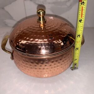 This is a new candle. It’s in excellent condition. The bottom is marred. The copper container is filled with Cider candle. Enjoy!
